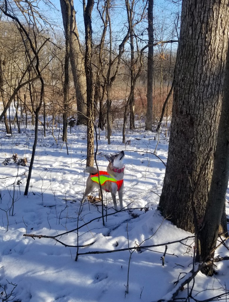 Ember is the founding bitch of Campfire. She has been worked on many species such as squirrel, raccoon, rabbit, coyote, grouse, and bear. She is a spicy girl who has no problem letting her opinions fly. She is aloof with many strangers and chooses who she wants to be her friends. She gets along great with the dogs in her home. When everyone is working, she is focused on her task, but she otherwise doesn’t care for the company of strange dogs. Ember absolutely loves to work, be it hunting, packing, bikejoring, or weight pull, her work ethic is incredible.