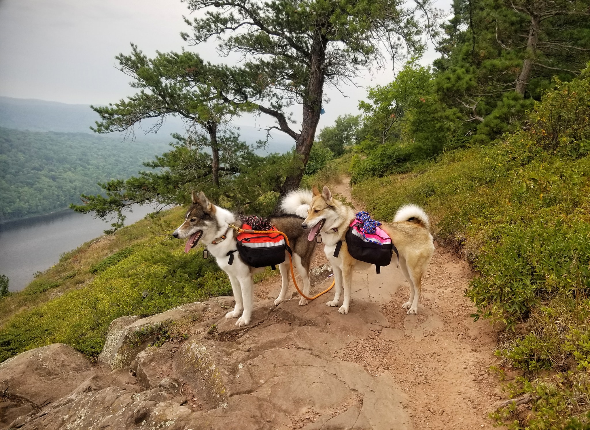 I keep my dogs leashed on hikes as it is often required, but also so they don’t jar their joints while carrying a pack, which can weigh anywhere from 5-11lbs. WSL will turn any activity into a hunt when they see, hear, or smell game they have been encouraged to hunt, which is another reason why I keep my dogs leashed on hikes.