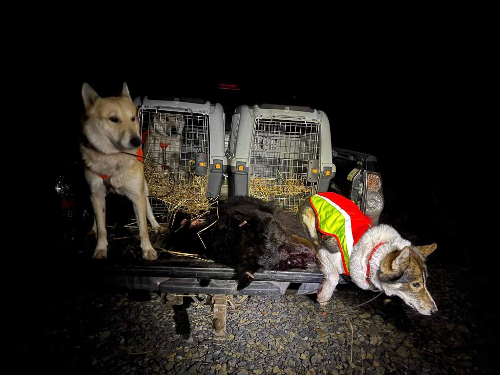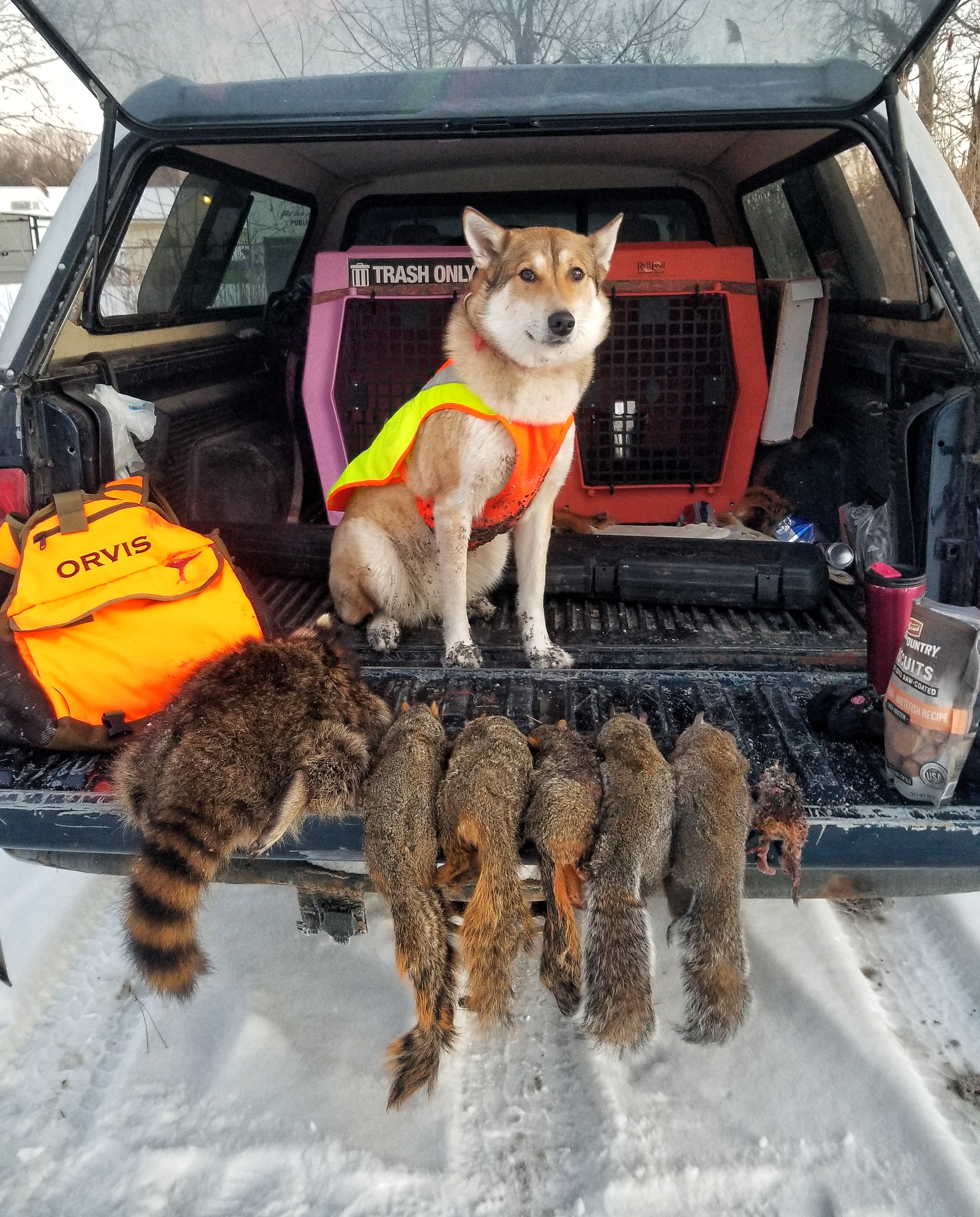 When hunting small game, a WSL will range out in search of prey. They often check in with the hunter if they are not finding anything and to keep an eye on their location. These dogs quickly learn that unless they manage to catch the animal, they cannot reach an animal that is up in a tree and need the hunter’s assistance to dispatch it. I prefer to keep my dogs within 250 yards and don’t want them going much farther for small game like squirrels. The squirrel has often found a nest or hole or timbered out of the tree by the time I get there. For slightly bigger animals like raccoons, I allow the dog to range out a bit farther.